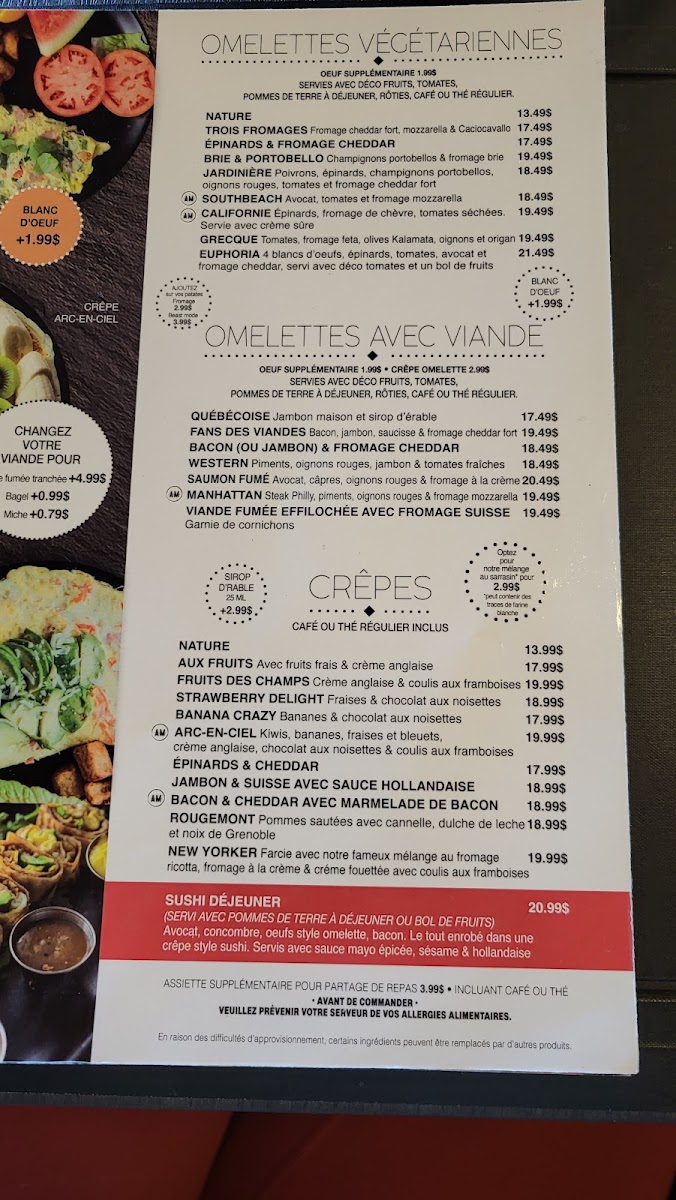 Welcome to A.M. Déjeuner Dîner, a charming breakfast and brunch haven located in the heart of Saint-Sauveur, Quebec. Emphasizing satisfaction, the menu is a delightful fusion of flavors, ensuring there’s something for everyone.